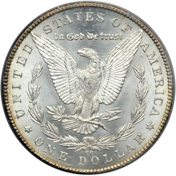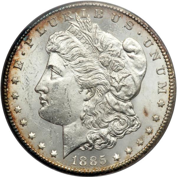 1885-CC Morgan Dollar. PCGS graded MS-62. Frosty white with some toning at the margin (PCGS # 7160) .