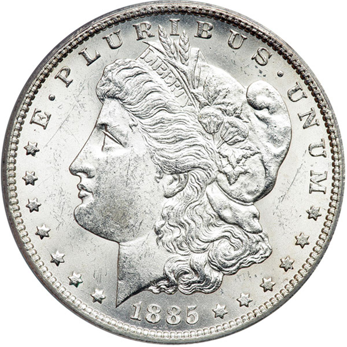 1885-CC Morgan Dollar. PCGS graded MS-62. Frosty and totally white (PCGS # 7160) .