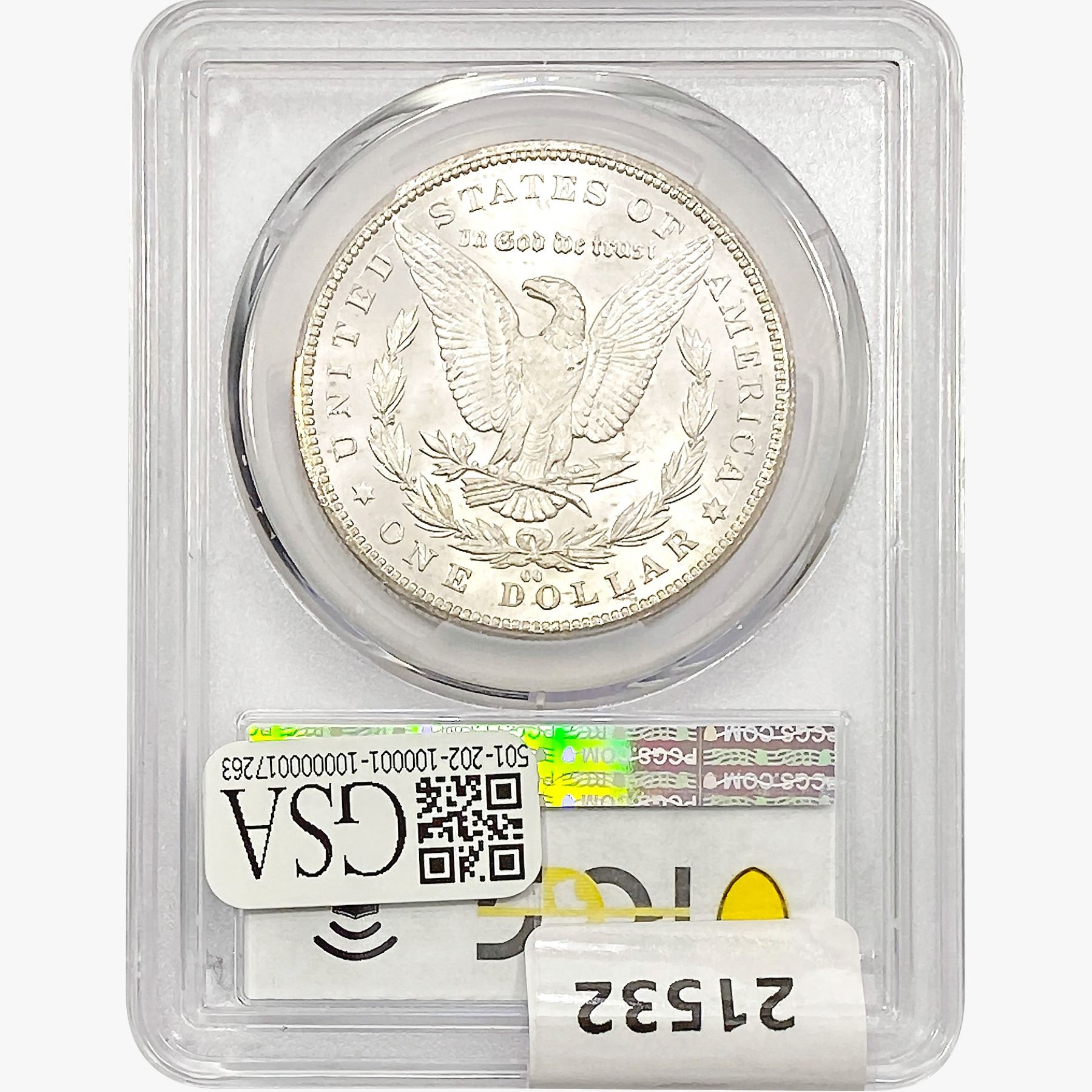 COINS AND CURRENCY LISTED IN GSA’S CATALOG AS GRADED AND ENCAPSULATED BY PCGS, NGC, ANACS, ICG, PCGS CURRENCY, PMG, PCGS BANKNOTE GRADING, CMC OR ANY OTHER THIRD-PARTY GRADING SERVICE ARE LIKEWISE SOLD “AS-IS” EXCEPT AS EXPRESSLY SET FORTH HEREIN. ALL THIRD-PARTY GRADING SERVICE GUARANTEES, INCLUDING AUTHENTICITY, ARE THE SOLE RESPONSIBILITY OF THE THIRD-PARTY GRADING SERVICE AND NOT WARRANTIES OR GUARANTEES OF GSA. BIDDERS SHOULD CONTACT THESE THIRD-PARTY GRADING SERVICES DIRECTLY WITH RESPECT TO ANY CLAIMS OR QUESTIONS THEY MAY HAVE CONCERNING THEIR GUARANTEES AND WARRANTIES. BIDDERS ACKNOWLEDGE AND AGREE THAT AUCTIONEER IS NOT BOUND BY OR LIABLE FOR ANY OPINION OR CERTIFICATION BY ANY THIRD-PARTY GRADING SERVICE. REMOVAL OF A PRODUCT FROM ITS PROTECTIVE CASING OR HOLDER OR ALTERATION OF ANY COIN HOLDER WAIVES ALL RIGHTS CONCERNING THE PRODUCT CONTAINED THEREIN.