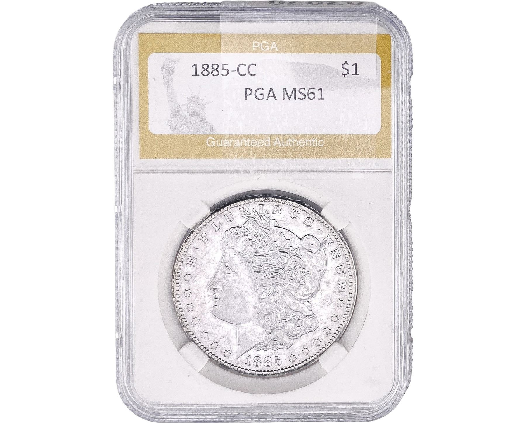 COINS AND CURRENCY LISTED IN GSA’S CATALOG AS GRADED AND ENCAPSULATED BY PCGS, NGC, ANACS, ICG, PCGS CURRENCY, PMG, PCGS BANKNOTE GRADING, CMC OR ANY OTHER THIRD-PARTY GRADING SERVICE ARE LIKEWISE SOLD “AS-IS” EXCEPT AS EXPRESSLY SET FORTH HEREIN. ALL THIRD-PARTY GRADING SERVICE GUARANTEES, INCLUDING AUTHENTICITY, ARE THE SOLE RESPONSIBILITY OF THE THIRD-PARTY GRADING SERVICE AND NOT WARRANTIES OR GUARANTEES OF GSA. BIDDERS SHOULD CONTACT THESE THIRD-PARTY GRADING SERVICES DIRECTLY WITH RESPECT TO ANY CLAIMS OR QUESTIONS THEY MAY HAVE CONCERNING THEIR GUARANTEES AND WARRANTIES. BIDDERS ACKNOWLEDGE AND AGREE THAT AUCTIONEER IS NOT BOUND BY OR LIABLE FOR ANY OPINION OR CERTIFICATION BY ANY THIRD-PARTY GRADING SERVICE. REMOVAL OF A PRODUCT FROM ITS PROTECTIVE CASING OR HOLDER OR ALTERATION OF ANY COIN HOLDER WAIVES ALL RIGHTS CONCERNING THE PRODUCT CONTAINED THEREIN.