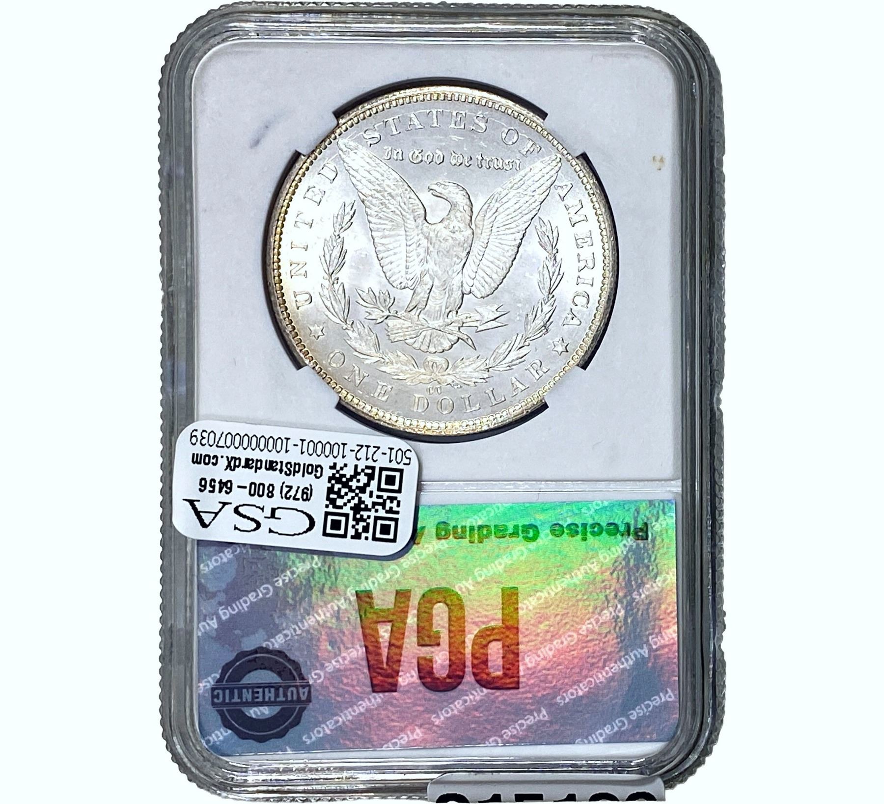 e. Coins sold referencing a third-party grading service are sold “AS IS” without any express or implied warranty, except for a guarantee by GSA that they are genuine. Removal or alteration of the holder, voids all of Bidder’s claims concerning that Product. Certain warranties may be available from the grading services and Bidders are referred to them for further details: Numismatic Guaranty Corporation (NGC), PO Box 4776, Sarasota, FL 34230, www.ngccoin.com/services/writtenguarantee.asp; Professional Coin Grading Services (PCGS), PO Box 9458, Newport Beach, CA 92658, www.pcgs.com/guarantee.html; ANACS, 6555 S. Kenton St., Ste. 303, Englewood, CO 80111; and Independent Coin Grading Co. (ICG), 7901 East Bellview, Ave., Suite 50, Englewood, CO 80111.