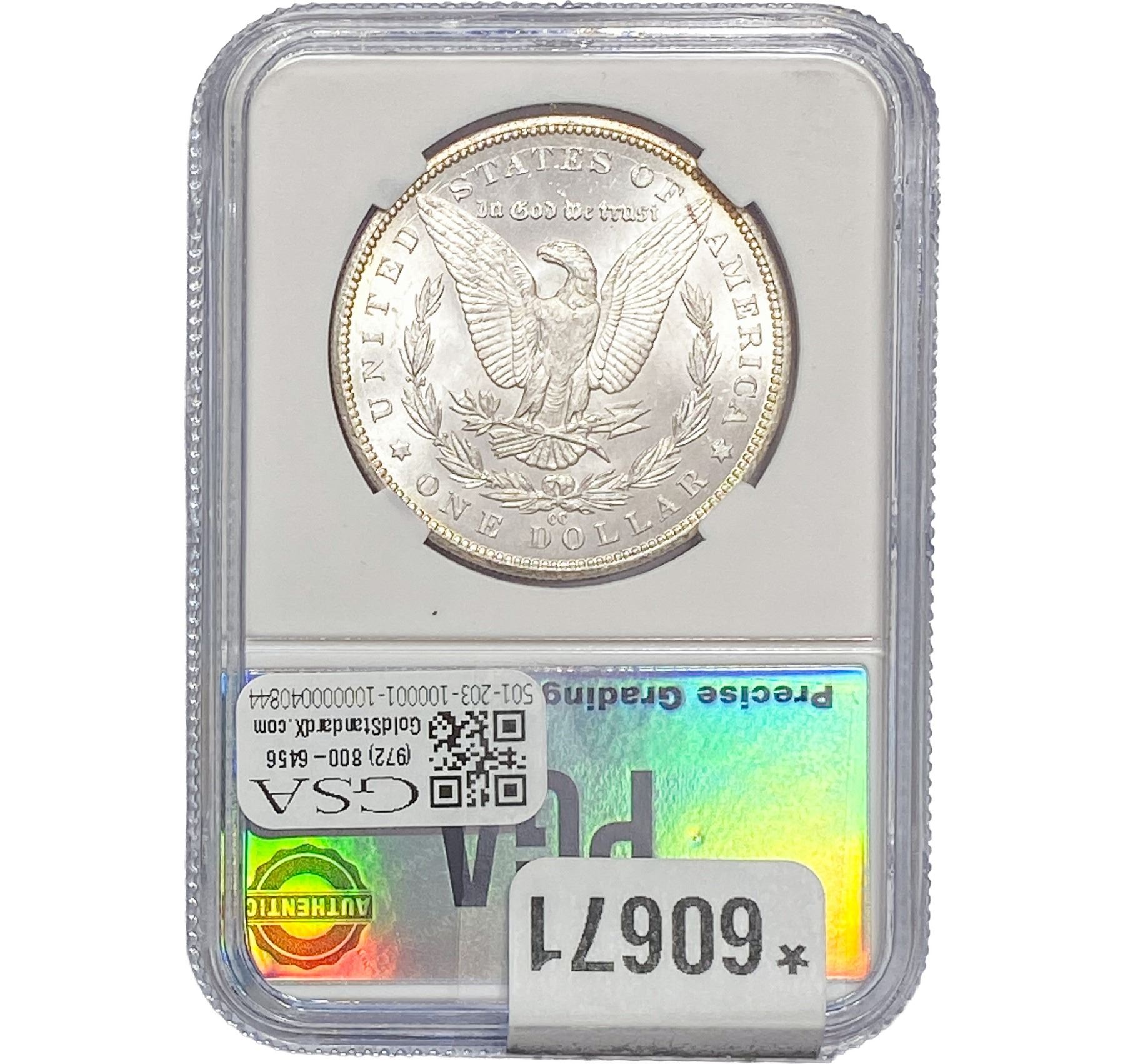 l. All non-certified coins and currency are guaranteed genuine, but are not guaranteed as to grade, since grading is a matter of opinion, an art and not a science, and therefore the description rendered by GSA or any third-party grading service may not agree with the opinion of others (including trained experts), and the same expert may not grade the same item with the same grade at two different times. GSA may, but is not obligated to, express an opinion as to non-certified numismatic items, in GSA’s opinion, or by its employees’ experience and the current interpretation of the American Numismatic Association’s standards as of the date the catalog was prepared. There is no guarantee or warranty expressed or implied that the grading opinions utilized by GSA, if any, will meet the standards of any grading service at any time in the future.