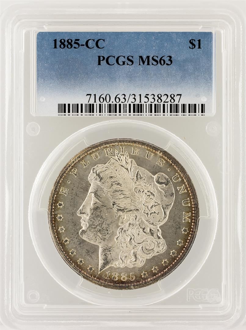 One 1885-CC PCGS MS63 Morgan Silver Dollar. PCGS Certified.