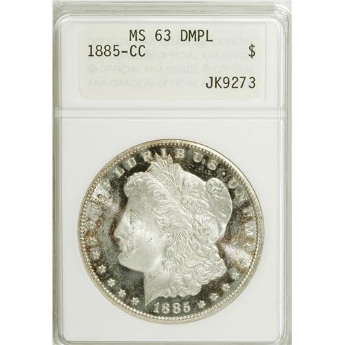 <B>1885-CC S$1 MS63 Deep Mirror Prooflike ANACS.</B></I> Bold contrast is noted between the exceptionally thick frost of the sharply struck devices and the partially patinated red and silver fields. A desirable Carson City dollar housed in a pre-Amos Press holder.<BR><BR><b>Shipping:</b> Coins & Currency (<a target="_blank" href="http://www.heritageauctions.com/common/shipping.php">view shipping information</a>)