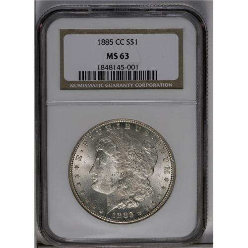 1885-CC S$1 MS63 NGC. Wisps of light peripheral tan co 1885-CC