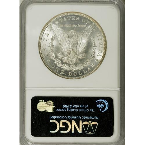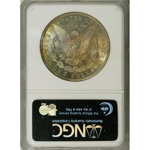 1885-CC S$1 MS64 NGC, pastel red-orange and olive shad