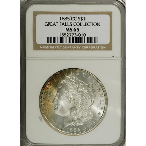 1885-CC S$1 MS65 NGC. Great Falls Collection. Well str