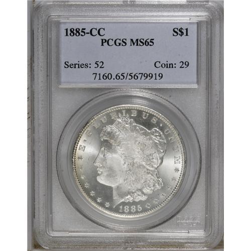 1885-CC S$1 MS65 PCGS. A gorgeous Gem with brilliant w