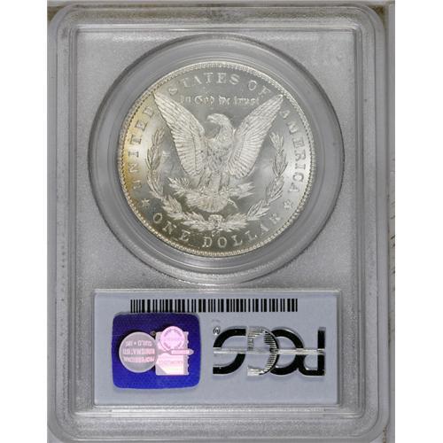 <B>1885-CC<img border='0' src='http://www.heritagecoins.com/images/star.gif' width=10 height=10>$1> MS65 PCGS.</B></I> A gorgeous Gem with brilliant white surfaces and satiny luster. Frosty devices are surrounded by reflective fields, resulting in light cameo contrast. A thin crescent of light gold toning along the left reverse border adds to the overall eye appeal of this piece.