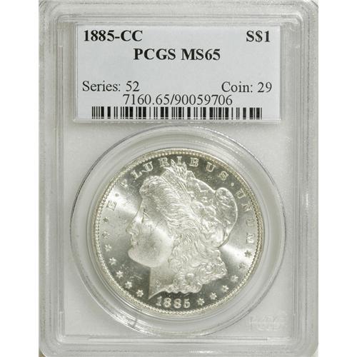 1885-CC S$1 MS65 PCGS. A sharp strike and frosty luste