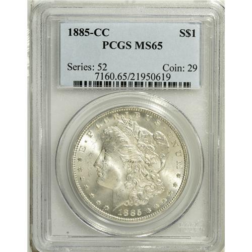 1885-CC S$1 MS65 PCGS. According to Q. David Bowers, M