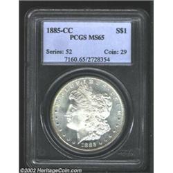 1885-CC S$1 MS65 PCGS. Both sides are boldly struck and lustrous, but, whereas the obverse is brilli