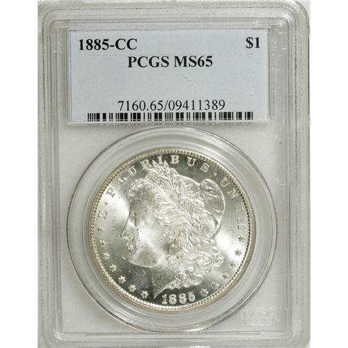 1885-CC S$1 MS65 PCGS. Subtle gold toning visits this