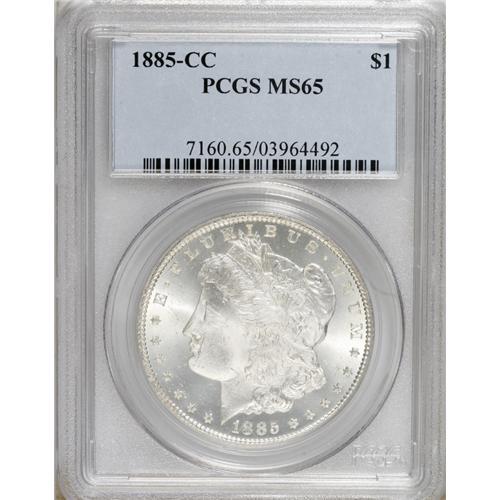 <B>1885-CC S$1 MS65 PCGS.</B></I> Sweeping luster and a precision strike combine with well preserved fields to ensure the Gem status for this attractive Carson City dollar. Only trivial grazes on the cheek prevent an even higher numerical assessment.<BR><BR><b>Shipping:</b> Coins & Currency (<a target="_blank" href="http://www.heritageauctions.com/common/shipping.php">view shipping information</a>)