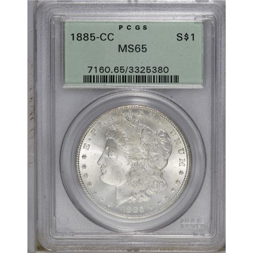 1885-CC S$1 MS65 PCGS. This lustrous and gently toned