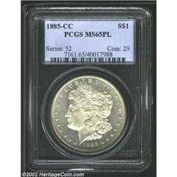 1885-CC S$1 MS65 Prooflike PCGS. Light gold patina visits the devices, with an additional blush of r