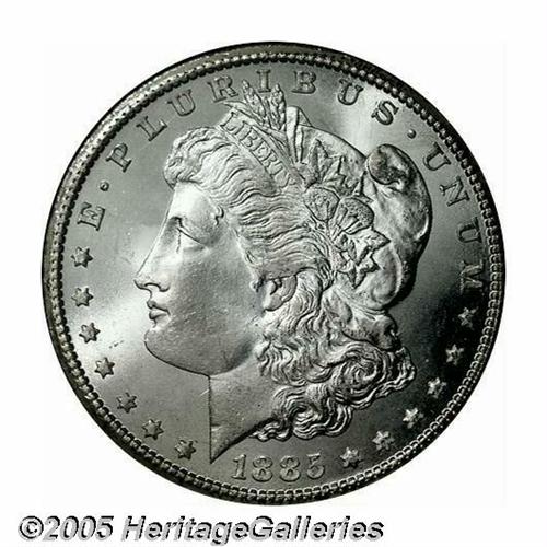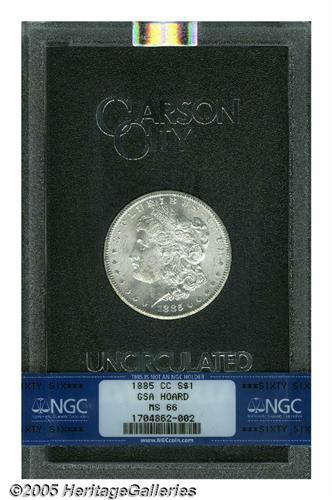 <B>1885-CC<S$1> MS66 NGC.</B></I> A brilliant and well struck Gem that has potent luster and a nearly pristine reverse. The lowest mintage Carson City issue.
