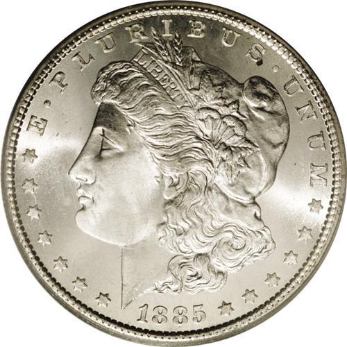 <B>1885-CC<img border='0' src='http://www.heritagecoins.com/images/star.gif' width=10 height=10>$1> MS66 PCGS.</B></I> This lovely premium Gem has potent luster and nearly undisturbed surfaces. In addition, the strike is very sharp. A popular low mintage Carson City issue.<BR><I>From The Michael Casper Collection, Part Three.</B></I>