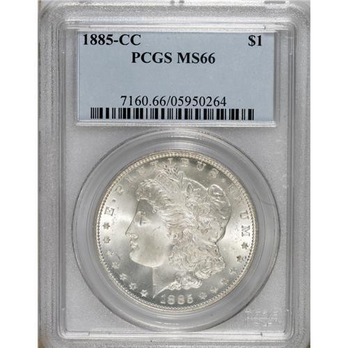 <B>1885-CC S$1 MS66 PCGS.</B></I> Gorgeous mint frost shines over the untoned bluish-white surfaces. Well struck and expertly preserved, this Premium Gem only suffers from an occasional minor blemish.<BR><BR><b>Shipping:</b> Coins & Currency (<a target="_blank" href="http://www.heritageauctions.com/common/shipping.php">view shipping information</a>)