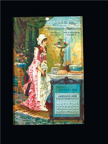 1885 Calendar for Renolds Brothers Merchants, Chicago and Toledo. Full pad with original grommets. Framed under glass, mint condition. 8 X 12 inches.