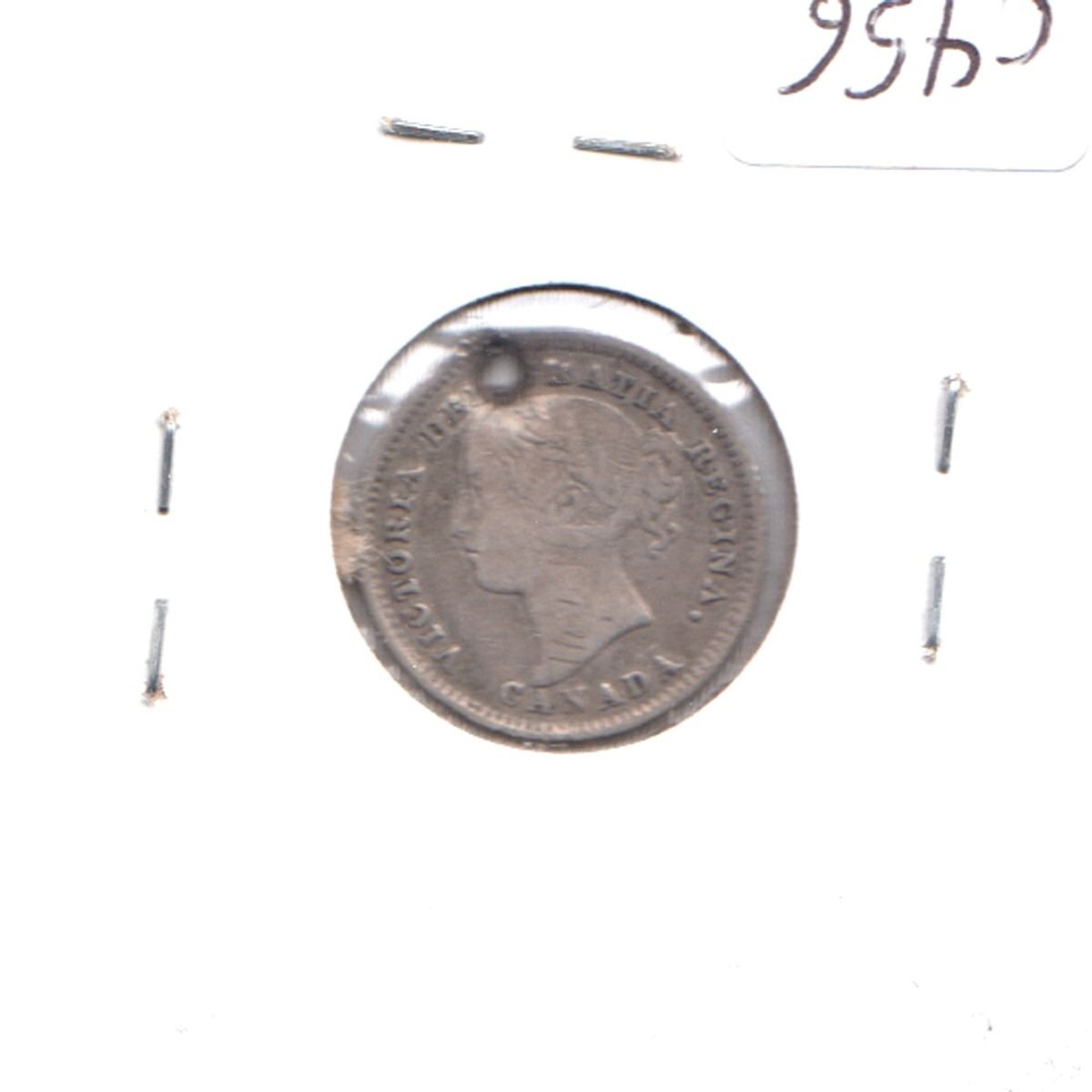 1885 Canada Obv 4. 10-cent F-VF (Hole)