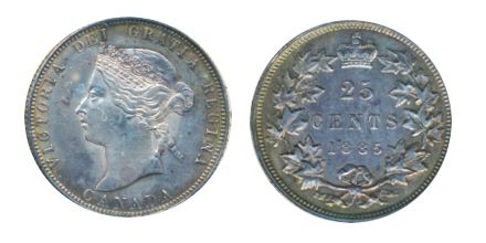 1885, Curved top ‘5’. ICCS graded Extra Fine-40. Lightly polished. Medium heavy toning.