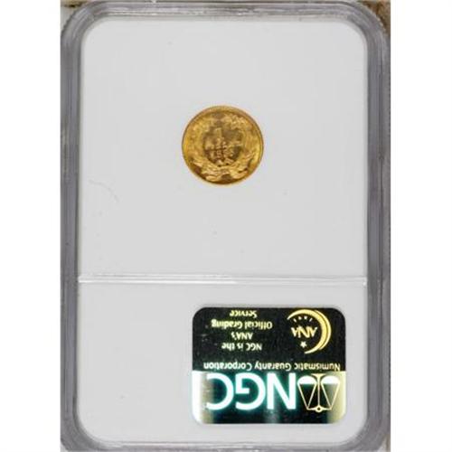 <B>1885 G$1 MS65 NGC.</B></I> A shining and attractive representative of this later gold dollar issue, well-defined with a touch of emerald-green against the prevailing butter-yellow color that characterizes the surfaces. This delightful Gem is one of just 11,100 pieces coined.<BR><BR><b>Shipping:</b> Coins & Currency (<a target="_blank" href="http://www.heritageauctions.com/common/shipping.php">view shipping information</a>)