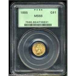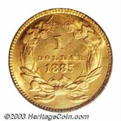 <table><tr><td><TABLE cellSpacing=0 cellPadding=0 width="100%" bgColor=#000000 border=0><TBODY> <TR><TD width="100%"><TABLE cellSpacing=1 cellPadding=3 width="100%" border=0><TBODY><TR><TD width="100%" bgColor=#79735c><FONT face=arial color=#ffffff size=3><B>Description</B> </FONT></TD></TR><TR><TD width="100%" bgColor=#ffffff><FONT face=arial size=2><B>1885 G$1 MS66 PCGS.</B></I> Although the mintage of 11,156 pieces is relatively high for a late-date gold dollar, this issue remains relatively scarce in Mint State. A razor-sharp strike and scintillating mint luster are the hallmarks of this bright, frosty Gem, which is only marred by a tiny planchet flake (as struck) out of the lower left obverse, by the rim below the tip of the bust truncation. A flashy, exquisitely preserved orange-gold example. Population: 24 in 66, 7 finer (9/03). </FONT></TD></TR></TBODY></TABLE></TD></TR></TBODY></TABLE><BR><A name=PricesRealized></A><TABLE cellSpacing=0 cellPadding=0 width="100%" bgColor=#000000 border=0><TBODY><TR><TD width="100%"><TABLE cellSpacing=1 cellPadding=3 width="100%" border=0><TBODY><TR><TD width="100%" bgColor=#79735c><A name=PR><FONT face=arial color=#ffffff size=3><B>Previous Prices from Heritage Auctions</B> </FONT></A></TD></TR><TR><TD bgColor=#f6f6ed><TABLE cellSpacing=0 cellPadding=0 width="100%" border=1><TBODY><TR><TD align=middle width="33%"><B>Date</B></TD><TD align=middle width="33%"><B>Service</B></TD><TD align=middle width="33%"><B>Price</B></TD></TR><TR bgColor=whitesmoke><TD width="33%"><B>08/02/1997</B></TD><TD width="33%">PCGS</TD><TD width="33%">$7,590.00</TD></TR><TR bgColor=whitesmoke><TD width="33%"><B>06/01/2000</B></TD><TD width="33%">NGC</TD><TD width="33%">$2,760.00</TD></TR><TR bgColor=whitesmoke><TD width="33%"><B>01/01/1990</B></TD><TD width="33%">PCGS</TD><TD width="33%">$9,020.00</TD></TR><TR bgColor=whitesmoke><TD width="33%"><B>03/01/1998</B></TD><TD width="33%">NGC</TD><TD width="33%">$3,080.00</TD></TR></TBODY></TABLE></TD></TR><TR><TD bgColor=#ffffff><FONT face=arial size=1 ?>PLEASE NOTE: All prices realized reflect the final hammer price PLUS the buyer's premium in auctions that charge a buyer's premium. Each item has a notation at the top of the listing indicating whether that lot included a buyer's premium. Example: A item that sells with a final hammer price of $100 and a 20% buyer's premium will display with a price realized of $120. All information listed is intended to be as accurate as possible, but errors are possible. Please use this guide carefully and inform us of any inaccuracies. </FONT></TD></TR></TBODY></TABLE></TD></TR></TBODY></TABLE><BR><TABLE cellSpacing=0 cellPadding=0 width="100%" bgColor=#000000 border=0><TBODY><TR><TD width="100%"><TABLE cellSpacing=1 cellPadding=3 width="100%" border=0><TBODY><TR><TD width="100%" bgColor=#79735c colSpan=6><FONT face=arial color=#ffffff size=3><B>Price Guide*</B> </FONT></TD></TR><TR bgColor=#f6f6ed><TD align=middle><B>Grade</B> </TD><TD align=middle><B>Coin World<BR>(Trends)</B> </TD><TD align=middle><B>Numismedia<BR>Retail</B> </TD><TD align=middle><B>Numismedia<BR>Wholesale</B> </TD><TD align=middle><B>Coin<BR>Universe</B> </TD><TD align=middle><B>Heritage<BR>Value Index</B> </TD></TR><TR bgColor=#ffffff><TD align=middle>65</TD><TD align=right>$2,100.00</TD><TD align=right>---</TD><TD align=right>$1,550.00</TD><TD align=right>$1,750.00</TD><TD align=right>$1,588.75</TD></TR><TR style="FONT-WEIGHT: bold" bgColor=#cccfdd><TD align=middle>66</TD><TD align=right>$3,600.00</TD><TD align=right>---</TD><TD align=right>$2,350.00</TD><TD align=right>$2,500.00</TD><TD align=right>$2,211.25</TD></TR><TR bgColor=#ffffff><TD align=middle>67</TD><TD align=right>---</TD><TD align=right>---</TD><TD align=right>$5,250.00</TD><TD align=right>---</TD><TD align=right>$2,934.00</TD></TR><TR bgColor=#ffffff><TD colSpan=6><FONT size=1>*All information listed is intended to be as accurate as possible, but errors are possible. No item may be returned or refused based on this information which is provided as a service to our customers. You should contact each pricing source directly to determine the accuracy of this information. </FONT></TD></TR></TBODY></TABLE></TD></TR></TBODY></TABLE><BR><TABLE cellSpacing=0 cellPadding=0 width="100%" bgColor=#000000 border=0><TBODY><TR><TD width="100%"><TABLE cellSpacing=1 cellPadding=3 width="100%" border=0><TBODY><TR><TD width="100%" bgColor=#79735c><FONT face=arial color=#ffffff size=3><B>Population Guide</B> </FONT></TD></TR><TR bgColor=#ffffff><TD align=middle><!-- Begin Output of Population Grid--><TABLE cellSpacing=0 cellPadding=0 width="100%" border=0><TBODY><TR><TD vAlign=center><TABLE cellSpacing=0 width="100%" border=1 cellsadding="3"><TBODY><TR><TD vAlign=center><TABLE cellSpacing=0 cellPadding=3 width="100%" border=1><TBODY><TR><TD vAlign=center align=middle bgColor=#f0f1e8 colSpan=2 <CENTER><FONT face=Arial size=2><B>PCGS Pop </B></FONT><CENTER></CENTER></TD><TD vAlign=center align=middle bgColor=#f0f1e8 colSpan=2><CENTER><FONT face=Arial size=2><B>NGC Pop</B></CENTER></FONT></TD></TR><TR><TD vAlign=center><FONT face=Arial size=2>(66)</FONT> </TD><TD vAlign=center align=right><FONT face=Arial size=2>25</FONT> </TD><TD vAlign=center><FONT face=Arial size=2>(66)</FONT> </TD><TD vAlign=center align=right><FONT face=Arial size=2>46</FONT> </TD></TR><TR><TD vAlign=center><FONT face=Arial size=2>(>66)</FONT> </TD><TD vAlign=center align=right><FONT face=Arial size=2>7</FONT> </TD><TD vAlign=center><FONT face=Arial size=2>(>66)</FONT> </TD><TD vAlign=center align=right><FONT face=Arial size=2>18</FONT> </TD></TR></TBODY></TABLE></TD></TR></TBODY></TABLE></TD></TR></TBODY></TABLE><!-- End Output of Population Grid--></TD></TR></TBODY></TABLE></TD></TR></TBODY></TABLE><BR><TABLE cellSpacing=0 cellPadding=0 width="100%" bgColor=#000000 border=0><TBODY><TR> Important notice: Heritage usually auctions material at the rate of 200-250 lots per hour. On some occasions eBay Live 