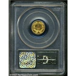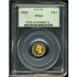 <TABLE cellSpacing=0 cellPadding=0 width="100%" bgColor=#000000 border=0><TBODY><TR><TD width="100%"><TABLE cellSpacing=1 cellPadding=3 width="100%" border=0><TBODY><TR><TD width="100%" bgColor=#79735c><FONT face=arial color=#ffffff size=3><B>Description</B> </FONT></TD></TR><TR><TD width="100%" bgColor=#ffffff><FONT face=arial size=2><B>1885 G$1 PR64 PCGS.</B></I> Production of proof Gold Dollars reached its zenith in this year, with 1,105 pieces struck. As one would expect, this is the most available date in the series as a proof, but that being said there are surprisingly few survivors available for today's collector. Less than 200 specimens are believed extant in all grades. This instantly appealing example has rich orange-gold color and unfathomably deep mirrors. </FONT></TD></TR></TBODY></TABLE></TD></TR></TBODY></TABLE><BR><A name=PricesRealized></A><TABLE cellSpacing=0 cellPadding=0 width="100%" bgColor=#000000 border=0><TBODY><TR><TD width="100%"><TABLE cellSpacing=1 cellPadding=3 width="100%" border=0><TBODY><TR><TD width="100%" bgColor=#79735c><A name=PR><FONT face=arial color=#ffffff size=3><B>Previous Prices from Heritage Auctions</B> </FONT></A></TD></TR><TR><TD bgColor=#f6f6ed><TABLE cellSpacing=0 cellPadding=0 width="100%" border=1><TBODY><TR><TD align=middle width="33%"><B>Date</B></TD><TD align=middle width="33%"><B>Service</B></TD><TD align=middle width="33%"><B>Price</B></TD></TR><TR bgColor=whitesmoke><TD width="33%"><B>05/01/1990</B></TD><TD width="33%">PCGS</TD><TD width="33%">$10,450.00</TD></TR><TR bgColor=whitesmoke><TD width="33%"><B>02/01/1991</B></TD><TD width="33%">PCGS</TD><TD width="33%">$7,975.00</TD></TR><TR bgColor=whitesmoke><TD width="33%"><B>09/01/1993</B></TD><TD width="33%">PCGS</TD><TD width="33%">$4,400.00</TD></TR><TR bgColor=whitesmoke><TD width="33%"><B>05/01/1993</B></TD><TD width="33%">NGC</TD><TD width="33%">$4,730.00</TD></TR><TR bgColor=whitesmoke><TD width="33%"><B>10/01/1990</B></TD><TD width="33%">NGC</TD><TD width="33%">$8,250.00</TD></TR></TBODY></TABLE></TD></TR><TR><TD bgColor=#ffffff><FONT face=arial size=1 ?>PLEASE NOTE: All prices realized reflect the final hammer price PLUS the buyer's premium in auctions that charge a buyer's premium. Each item has a notation at the top of the listing indicating whether that lot included a buyer's premium. Example: A item that sells with a final hammer price of $100 and a 20% buyer's premium will display with a price realized of $120. All information listed is intended to be as accurate as possible, but errors are possible. Please use this guide carefully and inform us of any inaccuracies. </FONT></TD></TR></TBODY></TABLE></TD></TR></TBODY></TABLE><BR><TABLE cellSpacing=0 cellPadding=0 width="100%" bgColor=#000000 border=0><TBODY><TR><TD width="100%"><TABLE cellSpacing=1 cellPadding=3 width="100%" border=0><TBODY><TR><TD width="100%" bgColor=#79735c colSpan=6><FONT face=arial color=#ffffff size=3><B>Price Guide*</B> </FONT></TD></TR><TR bgColor=#f6f6ed><TD align=middle><B>Grade</B> </TD><TD align=middle><B>Coin World<BR>(Trends)</B> </TD><TD align=middle><B>Numismedia<BR>Retail</B> </TD><TD align=middle><B>Numismedia<BR>Wholesale</B> </TD><TD align=middle><B>Coin<BR>Universe</B> </TD><TD align=middle><B>Heritage<BR>Value Index</B> </TD></TR><TR bgColor=#ffffff><TD align=middle>63</TD><TD align=right>---</TD><TD align=right>---</TD><TD align=right>$3,850.00</TD><TD align=right>$4,850.00</TD><TD align=right>$3,272.50</TD></TR><TR style="FONT-WEIGHT: bold" bgColor=#cccfdd><TD align=middle>64</TD><TD align=right>---</TD><TD align=right>---</TD><TD align=right>$4,350.00</TD><TD align=right>$5,500.00</TD><TD align=right>$3,815.00</TD></TR><TR bgColor=#ffffff><TD align=middle>65</TD><TD align=right>---</TD><TD align=right>---</TD><TD align=right>$7,250.00</TD><TD align=right>$9,500.00</TD><TD align=right>$6,362.50</TD></TR><TR bgColor=#ffffff><TD colSpan=6><FONT size=1>*All information listed is intended to be as accurate as possible, but errors are possible. No item may be returned or refused based on this information which is provided as a service to our customers. You should contact each pricing source directly to determine the accuracy of this information. </FONT></TD></TR></TBODY></TABLE></TD></TR></TBODY></TABLE><BR><TABLE cellSpacing=0 cellPadding=0 width="100%" bgColor=#000000 border=0><TBODY><TR><TD width="100%"><TABLE cellSpacing=1 cellPadding=3 width="100%" border=0><TBODY><TR><TD width="100%" bgColor=#79735c><FONT face=arial color=#ffffff size=3><B>Population Guide</B> </FONT></TD></TR><TR bgColor=#ffffff><TD align=middle><!-- Begin Output of Population Grid--><TABLE cellSpacing=0 cellPadding=0 width="100%" border=0><TBODY><TR><TD vAlign=center><TABLE cellSpacing=0 width="100%" border=1 cellsadding="3"><TBODY><TR><TD vAlign=center><TABLE cellSpacing=0 cellPadding=3 width="100%" border=1><TBODY><TR><TD vAlign=center align=middle bgColor=#f0f1e8 colSpan=2 <CENTER><FONT face=Arial size=2><B>PCGS Pop </B></FONT><CENTER></CENTER></TD><TD vAlign=center align=middle bgColor=#f0f1e8 colSpan=2><CENTER><FONT face=Arial size=2><B>NGC Pop</B></CENTER></FONT></TD></TR><TR><TD vAlign=center><FONT face=Arial size=2>(64)</FONT> </TD><TD vAlign=center align=right><FONT face=Arial size=2>26</FONT> </TD><TD vAlign=center><FONT face=Arial size=2>(64)</FONT> </TD><TD vAlign=center align=right><FONT face=Arial size=2>7</FONT> </TD></TR><TR><TD vAlign=center><FONT face=Arial size=2>(>64)</FONT> </TD><TD vAlign=center align=right><FONT face=Arial size=2>41</FONT> </TD><TD vAlign=center><FONT face=Arial size=2>(>64)</FONT> </TD><TD vAlign=center align=right><FONT face=Arial size=2>8</FONT> </TD></TR></TBODY></TABLE></TD></TR></TBODY></TABLE></TD></TR></TBODY></TABLE><!-- End Output of Population Grid--> Important notice: Heritage usually auctions material at the rate of 200-250 lots per hour. On some occasions eBay Live bid software or the Internet may not be able to keep up with the pace of the auction. We recom