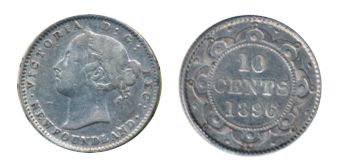 1885. ICCS Fine-12. Also. FIVE CENTS. 1945-C. ICCS Mint State-63. And. TEN CENTS. 1896. ICCS VF-20. Lot of three (3) coins.