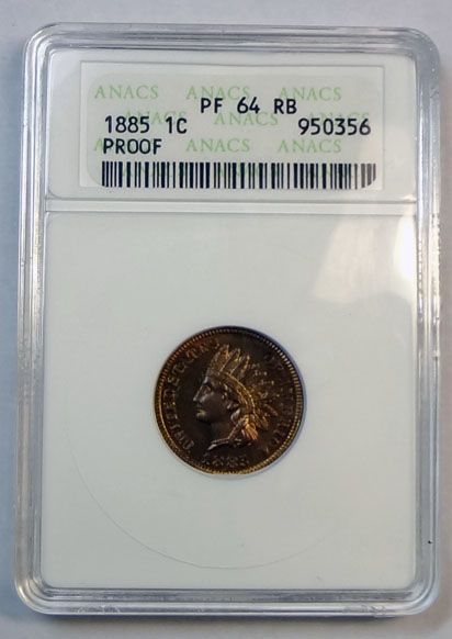1885 INDIAN ONE CENT ANACS PF 64 RB NICE