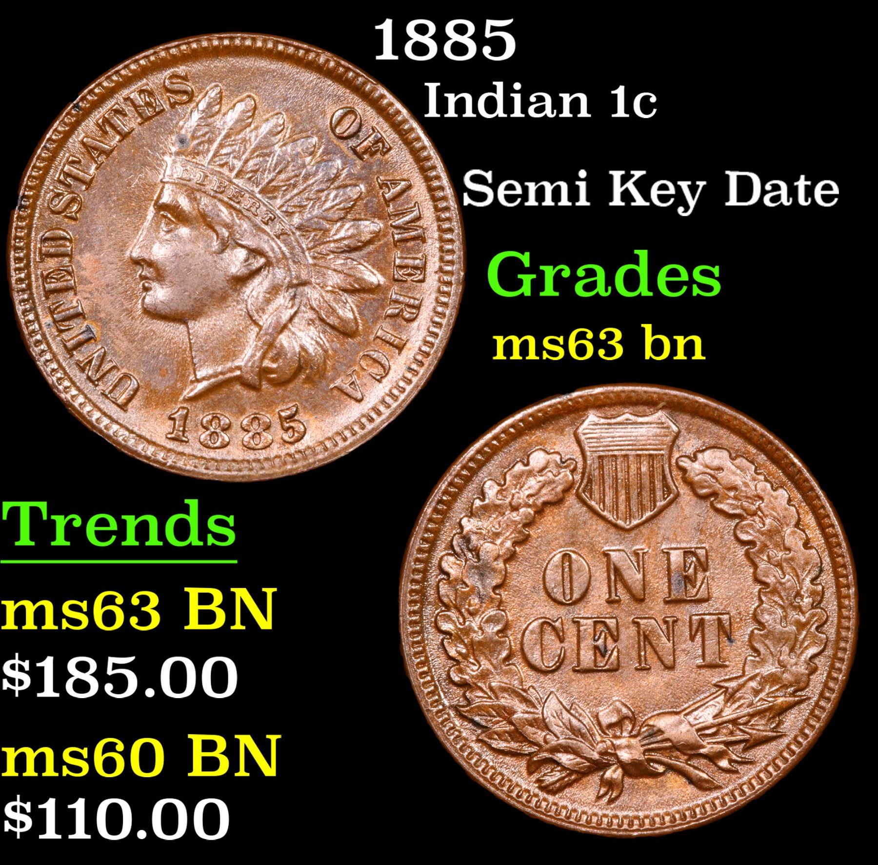 1885 Semi Key Date . Indian Cent 1c Grades Select Unc BN. A Corey's Pick