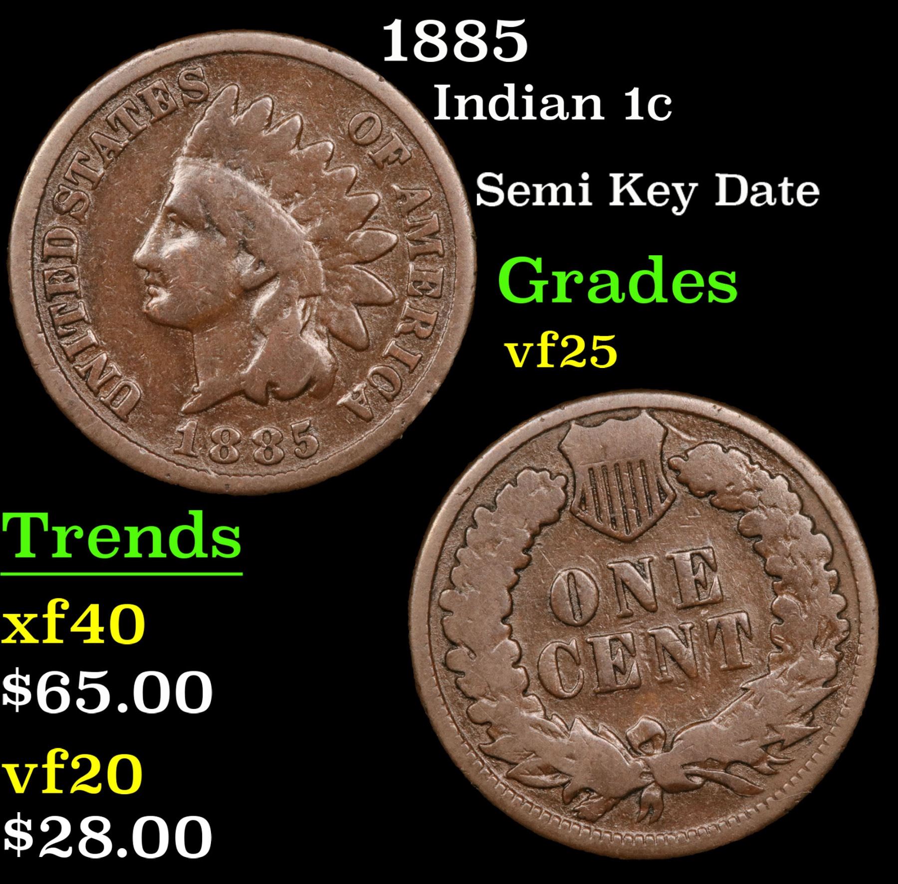 1885 Semi Key Date . Indian Cent 1c Grades vf+.
