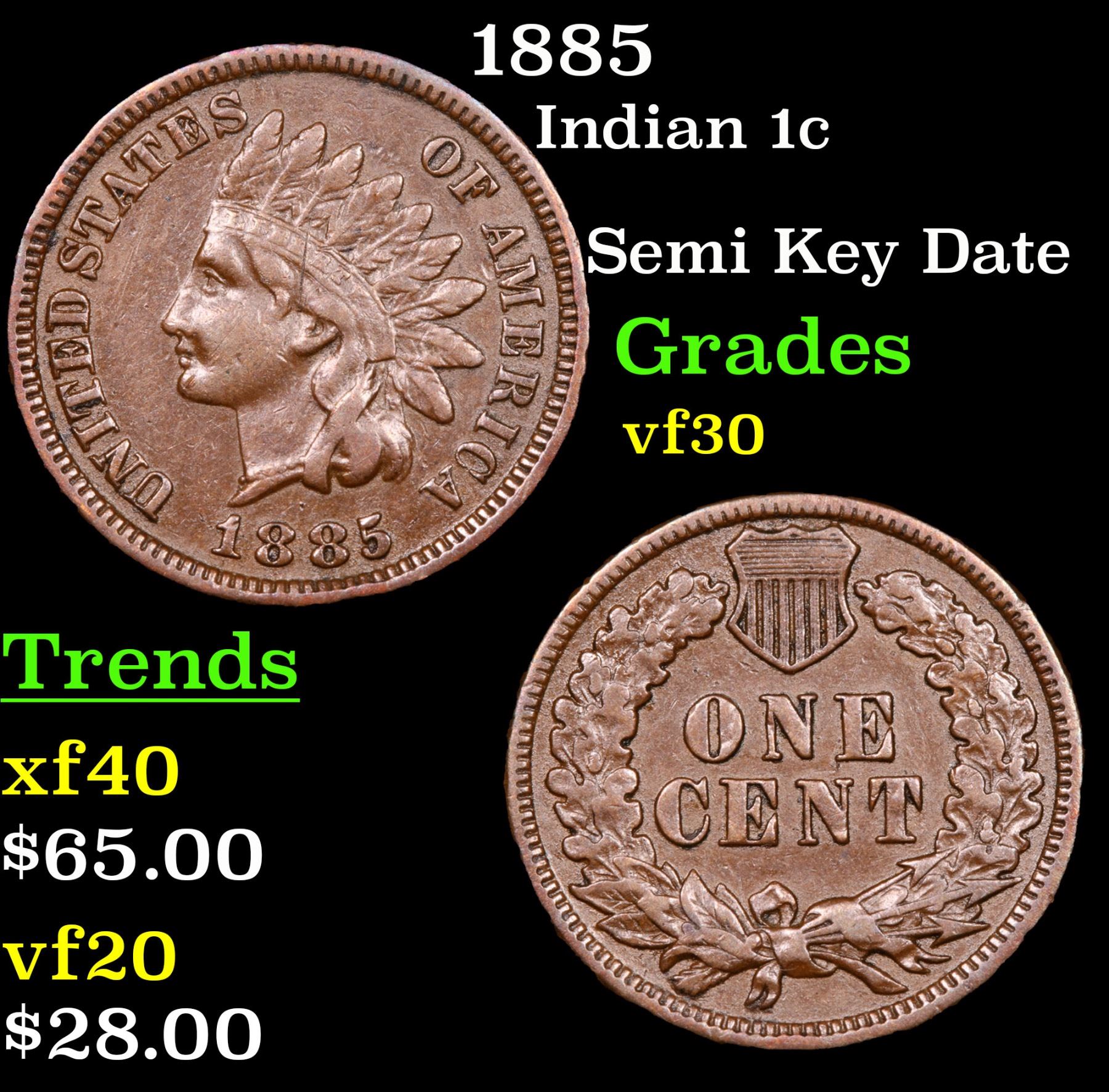 1885 Semi Key Date . Indian Cent 1c Grades vf++.