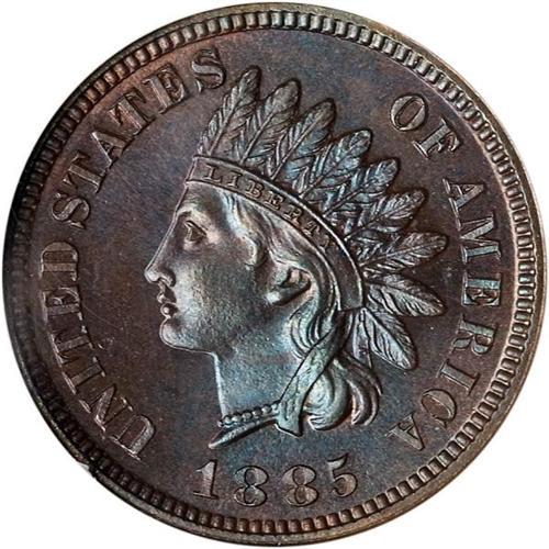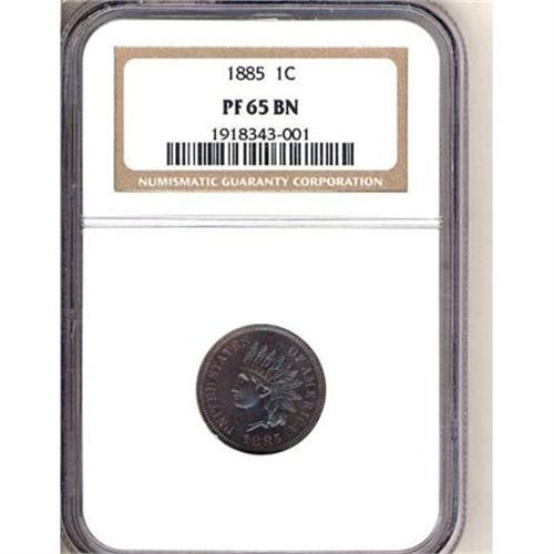 <b>1885 Indian Head Cent. NGC graded PF65 BR.</b> Deep steel blue and brown patina, a gem with glossy mirrors, sharp relief, and top-notch eye-appeal <b>(PCGS # 2152)</b>