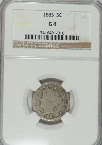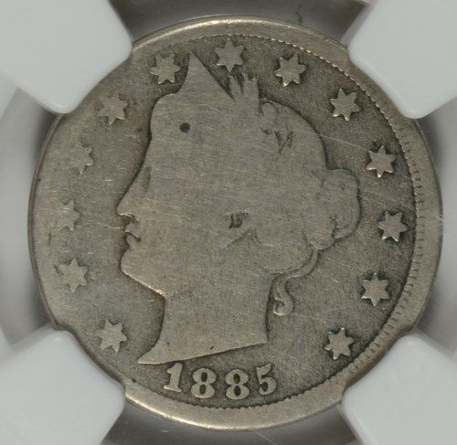 A HARD TO FIND KEY DATE LIBERTY "V" NICKEL, ESTIMATE $475.00 TO $520.00