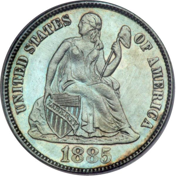 1885 Liberty Seated Dime. PCGS graded Proof 62. Nice even toning. Only 930 Proofs struck (PCGS # 4782) .