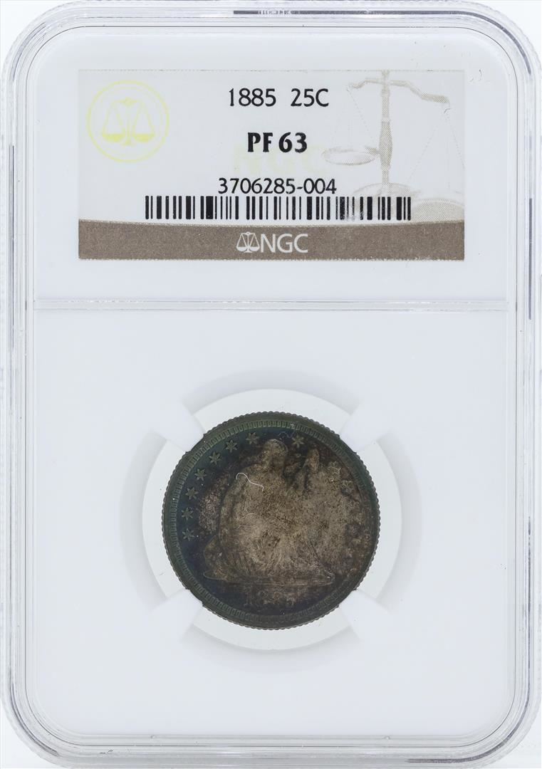 One 1885 Liberty Seated Proof Quarter NGC PF63. NGC Certified.
