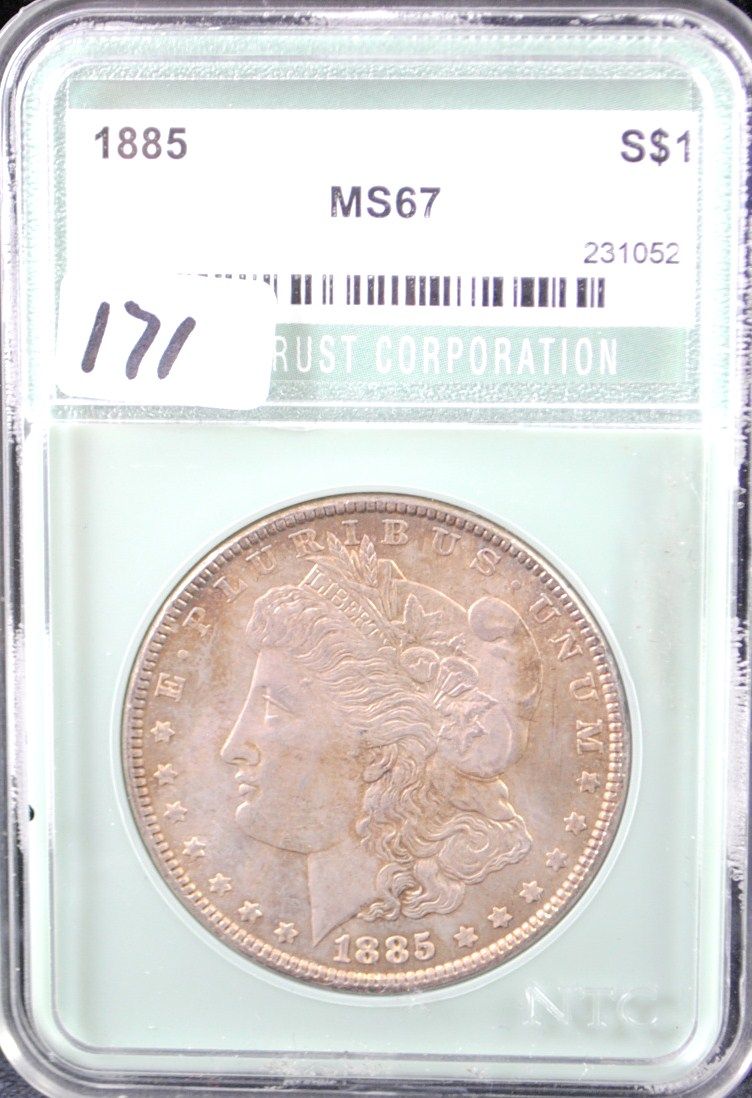 1885 MORGAN DOLLAR - NTC MS67 (COIN WORLD LISTS AN MS66 @ $500.00)