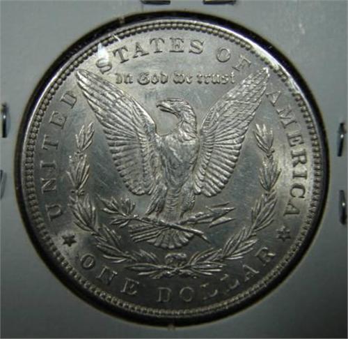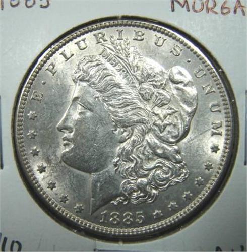1885 MORGAN SILVER DOLLAR. AU.