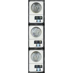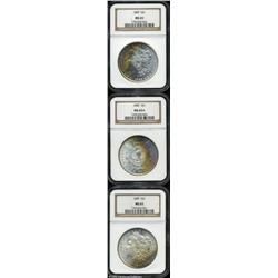 <B>1885<img border='0' src='http://www.heritagecoins.com/images/star.gif' width=10 height=10>$1 MS65 NGC,</B></I> sharply struck with a crescent of apricot and violet toning on the obverse; <B>1885 MS65 NGC,</B></I> well struck with a small crescent of gold, steel-blue, apricot toning on the obverse; and an <B>1885 MS65 <img border='0' src='http://www.heritagecoins.com/images/star.gif' width=10 height=10> NGC,</B></I> boldly defined with a large steel-blue and apricot toning crescent covering the right half of the reverse. 3 Coins Lot:10179
