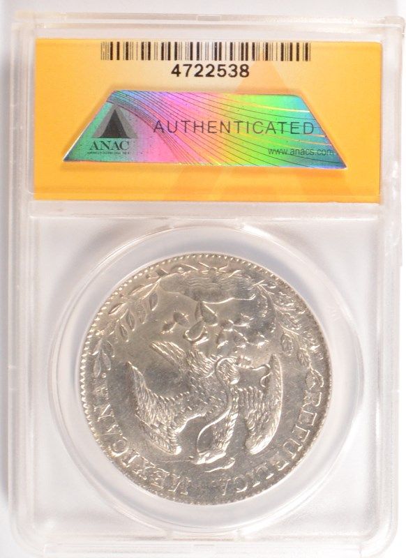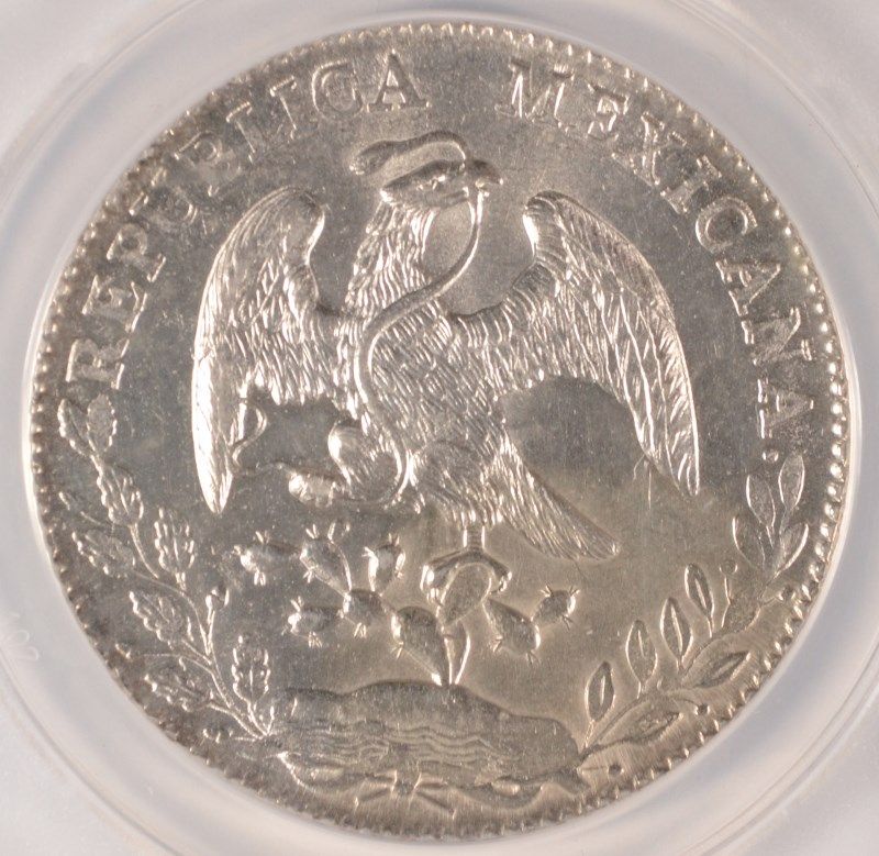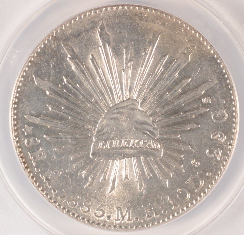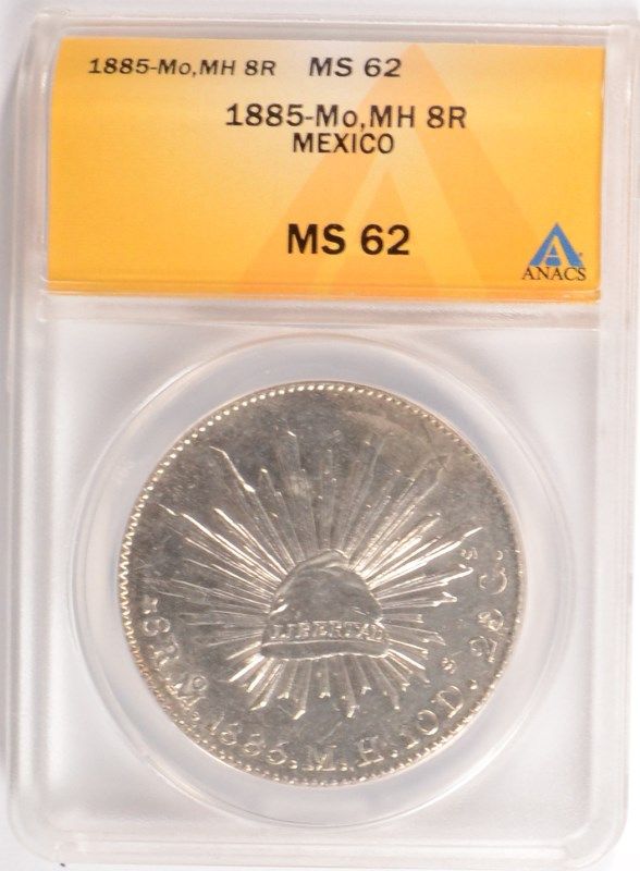 1885 Mo, MH 8 REALES, MEXICO, ANACS MS62