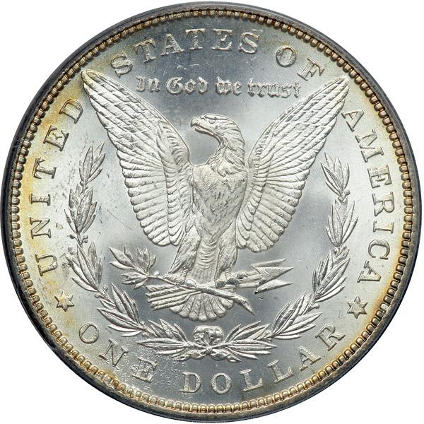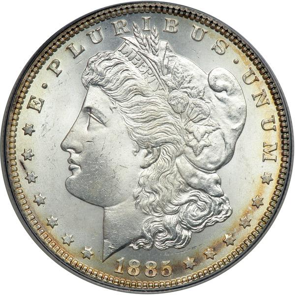 1885 Morgan Dollar. PCGS graded MS-65. Hints of delicate golden toning graces the borders (PCGS # 7158) .