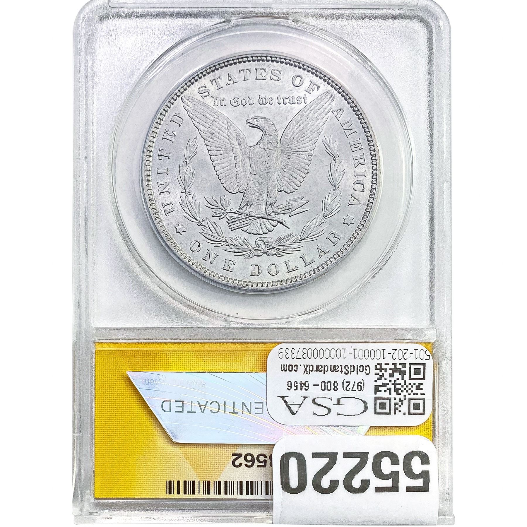 l. All non-certified coins and currency are guaranteed genuine, but are not guaranteed as to grade, since grading is a matter of opinion, an art and not a science, and therefore the description rendered by GSA or any third-party grading service may not agree with the opinion of others (including trained experts), and the same expert may not grade the same item with the same grade at two different times. GSA may, but is not obligated to, express an opinion as to non-certified numismatic items, in GSA’s opinion, or by its employees’ experience and the current interpretation of the American Numismatic Association’s standards as of the date the catalog was prepared. There is no guarantee or warranty expressed or implied that the grading opinions utilized by GSA, if any, will meet the standards of any grading service at any time in the future.