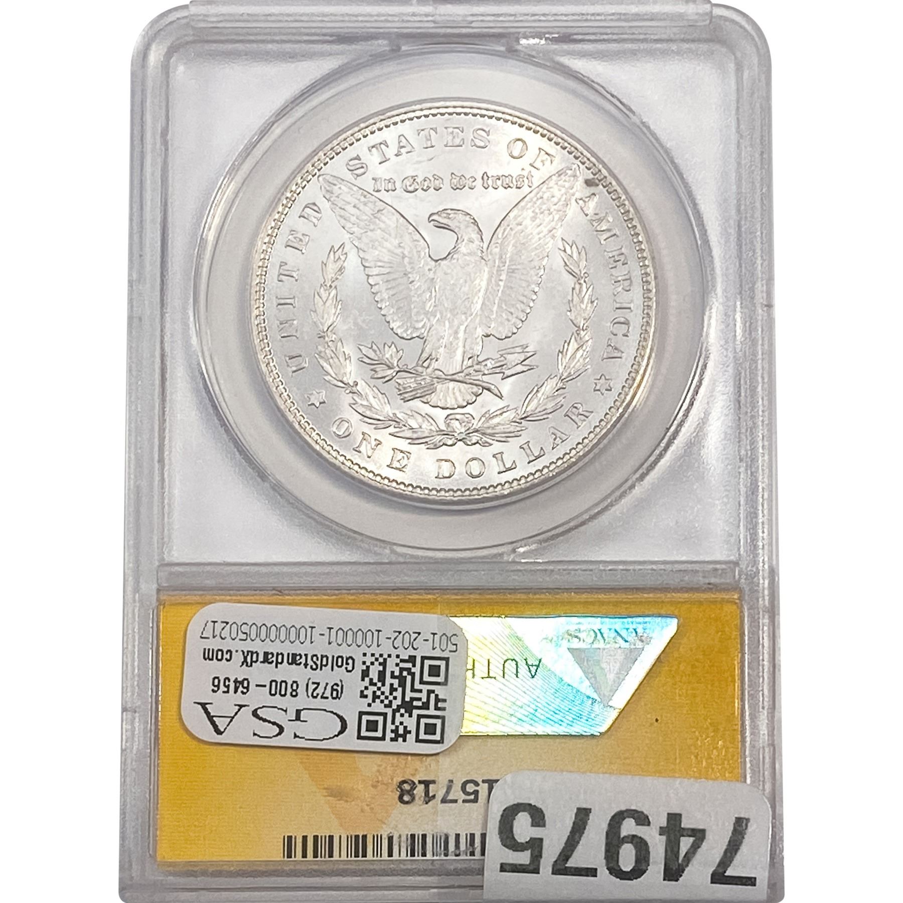 e. Coins sold referencing a third-party grading service are sold “AS IS” without any express or implied warranty, except for a guarantee by GSA that they are genuine. Removal or alteration of the holder, voids all of Bidder’s claims concerning that Product. Certain warranties may be available from the grading services and Bidders are referred to them for further details: Numismatic Guaranty Corporation (NGC), PO Box 4776, Sarasota, FL 34230, www.ngccoin.com/services/writtenguarantee.asp; Professional Coin Grading Services (PCGS), PO Box 9458, Newport Beach, CA 92658, www.pcgs.com/guarantee.html; ANACS, 6555 S. Kenton St., Ste. 303, Englewood, CO 80111; and Independent Coin Grading Co. (ICG), 7901 East Bellview, Ave., Suite 50, Englewood, CO 80111.