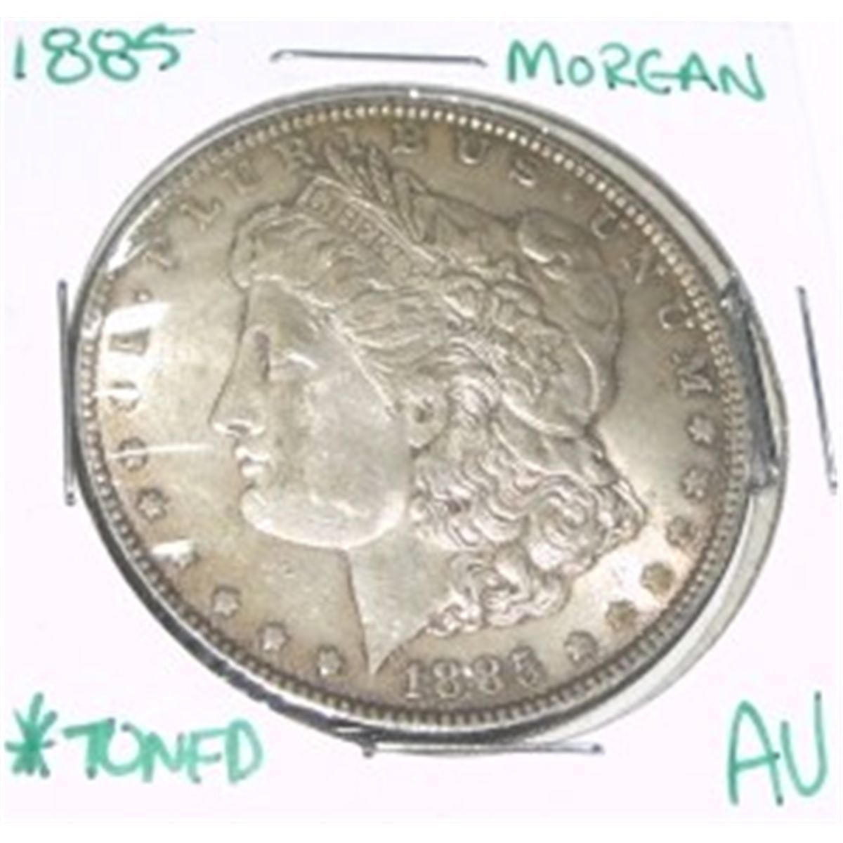1885 Morgan Silver Dollar *AU GRADE NICELY TONED - COIN OUT OF SAFE DEPOSIT BOX*!! ***Coin, Currency & All Items Listed in this auction - Grades, Conditions and Values are not Safe Deposit Coins LLC Responsibilty. Grades, Condition and Values are determined by Consigner(s) & Buyers ONLY***