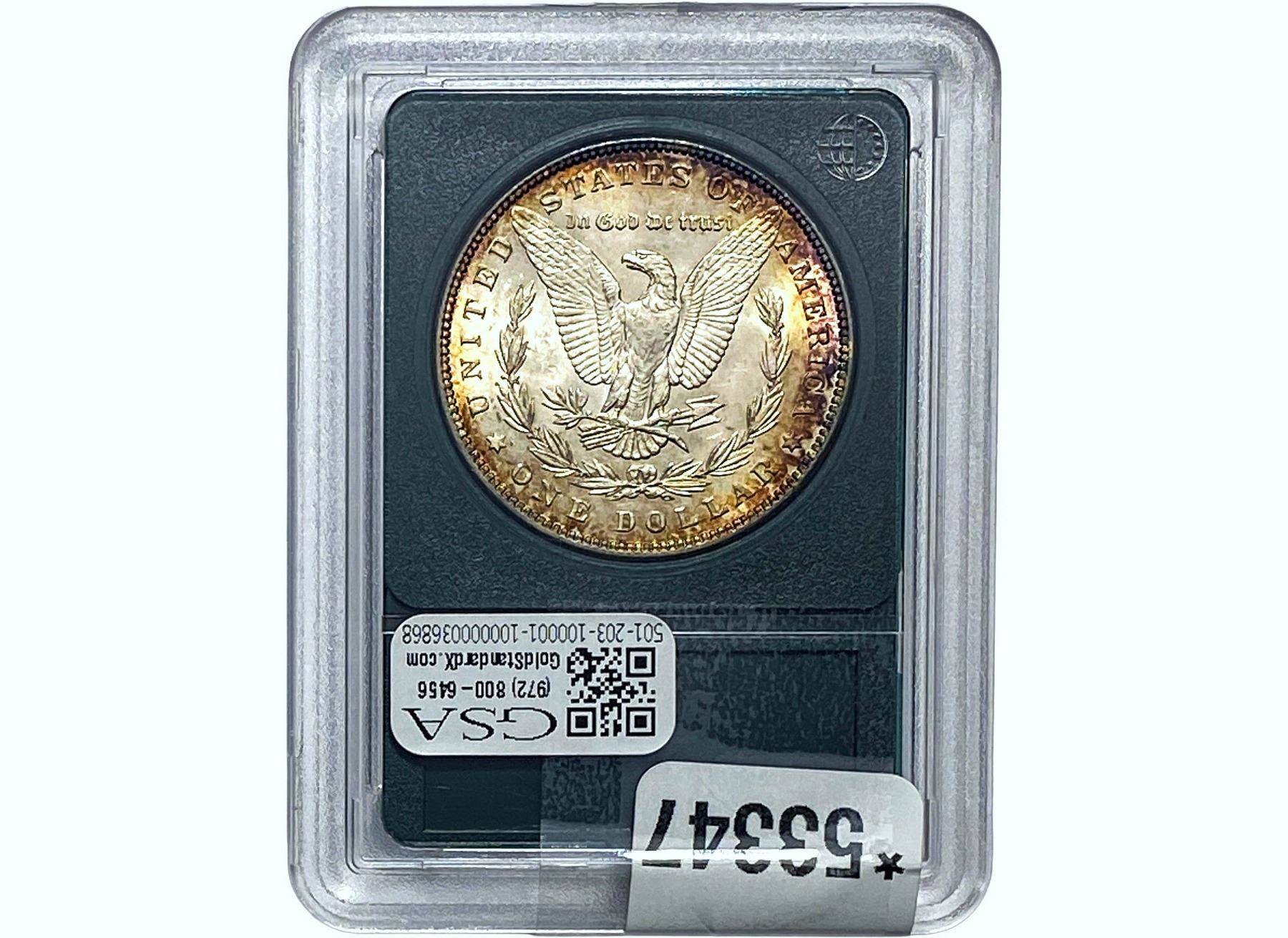 l. All non-certified coins and currency are guaranteed genuine, but are not guaranteed as to grade, since grading is a matter of opinion, an art and not a science, and therefore the description rendered by GSA or any third-party grading service may not agree with the opinion of others (including trained experts), and the same expert may not grade the same item with the same grade at two different times. GSA may, but is not obligated to, express an opinion as to non-certified numismatic items, in GSA’s opinion, or by its employees’ experience and the current interpretation of the American Numismatic Association’s standards as of the date the catalog was prepared. There is no guarantee or warranty expressed or implied that the grading opinions utilized by GSA, if any, will meet the standards of any grading service at any time in the future.