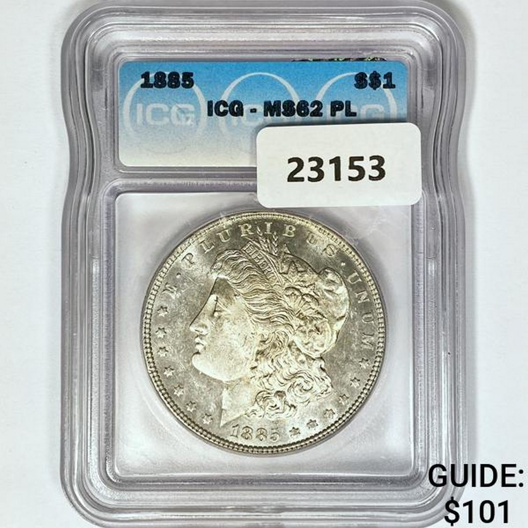 1885 Morgan Silver Dollar ICG MS62 PL