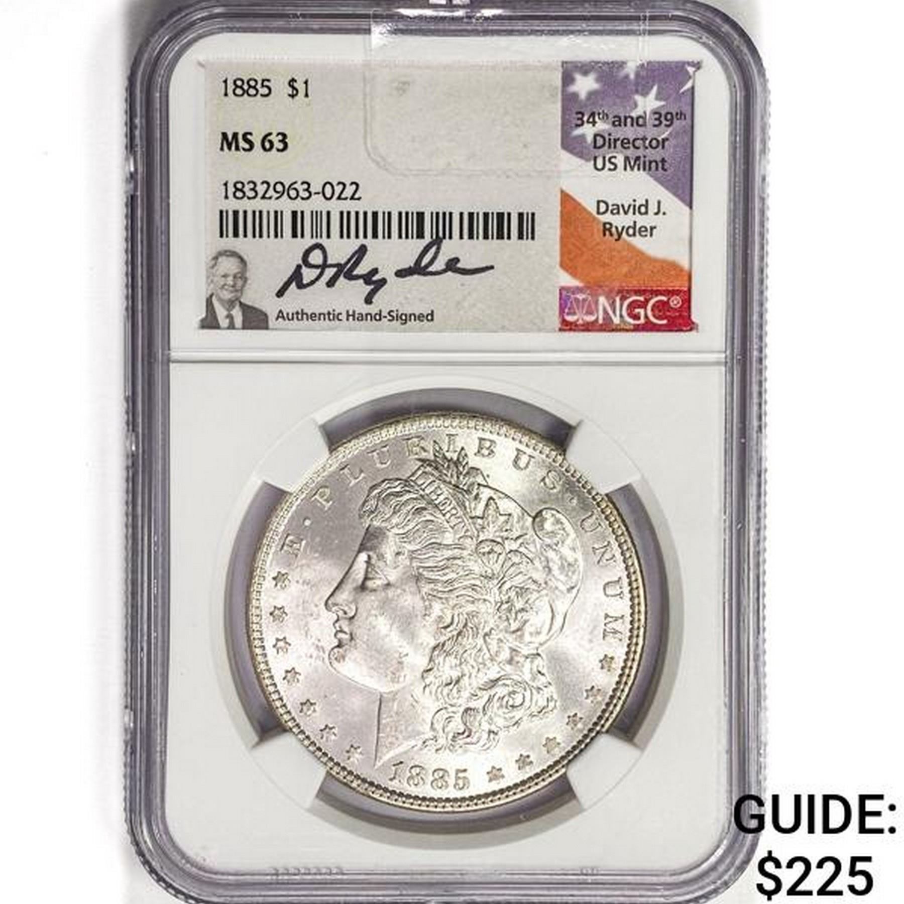 1885 Morgan Silver Dollar NGC MS63 Signed Ryder