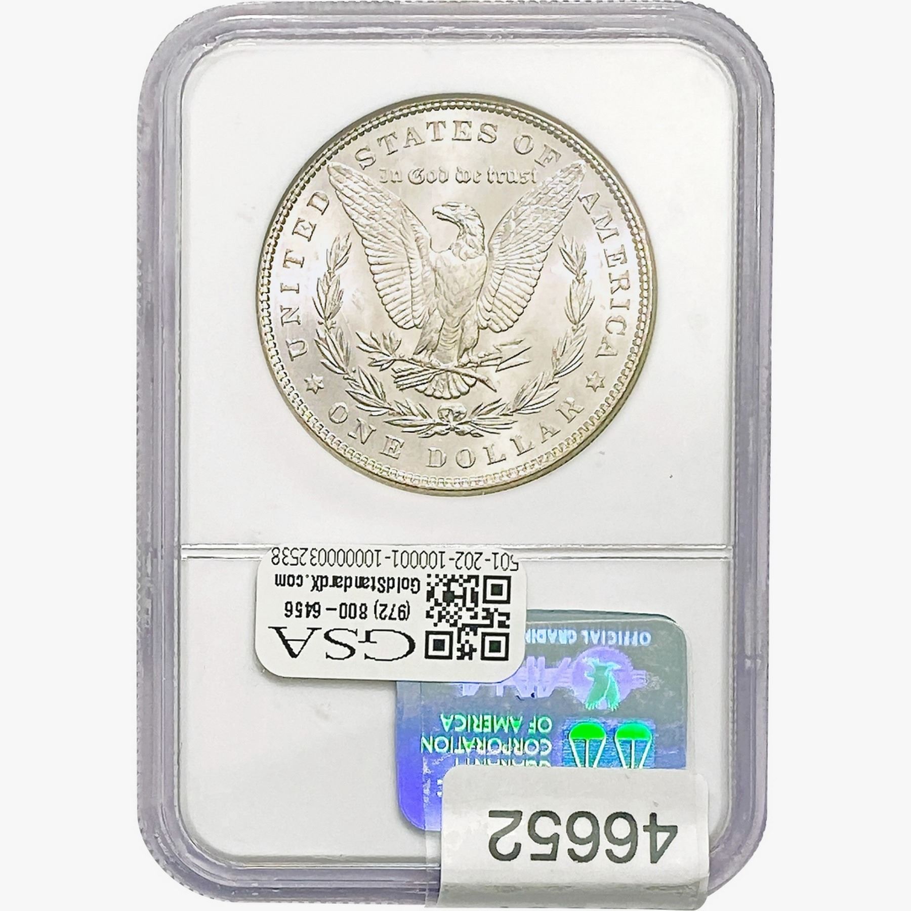 e. Coins sold referencing a third-party grading service are sold “AS IS” without any express or implied warranty, except for a guarantee by GSA that they are genuine. Removal or alteration of the holder, voids all of Bidder’s claims concerning that Product. Certain warranties may be available from the grading services and Bidders are referred to them for further details: Numismatic Guaranty Corporation (NGC), PO Box 4776, Sarasota, FL 34230, www.ngccoin.com/services/writtenguarantee.asp; Professional Coin Grading Services (PCGS), PO Box 9458, Newport Beach, CA 92658, www.pcgs.com/guarantee.html; ANACS, 6555 S. Kenton St., Ste. 303, Englewood, CO 80111; and Independent Coin Grading Co. (ICG), 7901 East Bellview, Ave., Suite 50, Englewood, CO 80111.
